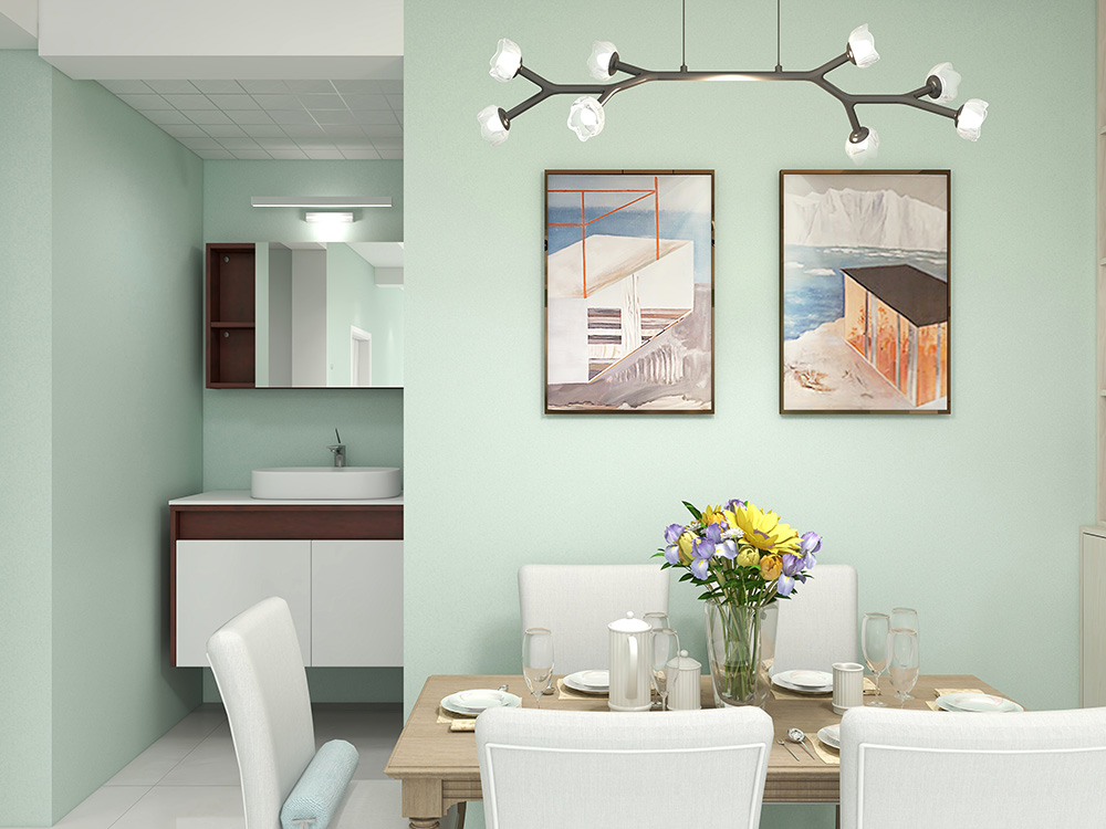 SLT34-浅绿色T竹炭纤维无缝墙布装修案例效果图